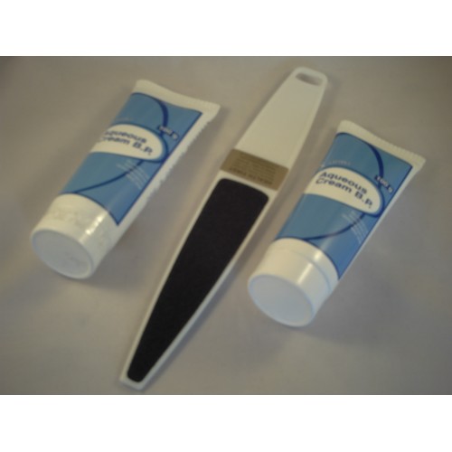This Basic Foot Care Pack provides everything you need for effective home foot care, helping to remove and protect against hard, dry skin, callus, corns, fissures and cracks. Each pack contains a dual-sided foot file and two 200 g tubes of Aqueous Cream.
